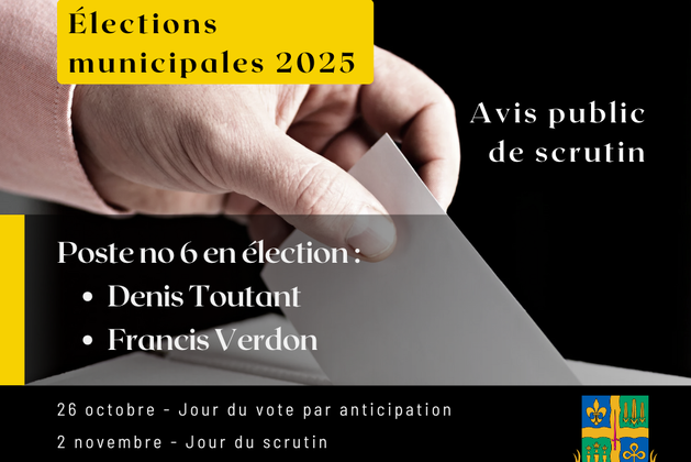 AVIS | Élections municipales le 2 novembre 2025 - Allez voter!