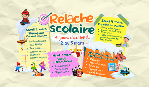 Notez qu'il n'y aura PAS de programmation pour le vendredi 6 mars.