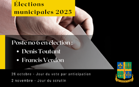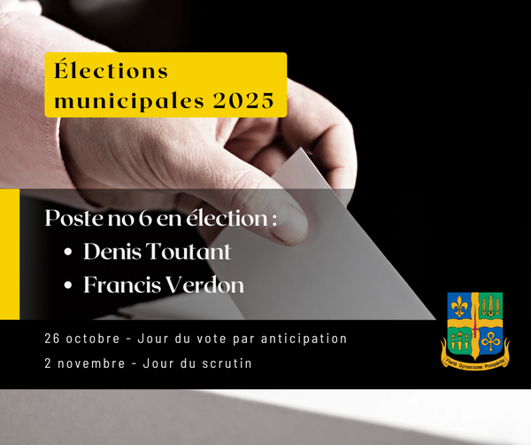 Une élection municipale aura lieu pour le siège no 6 avec les candidats suivants: