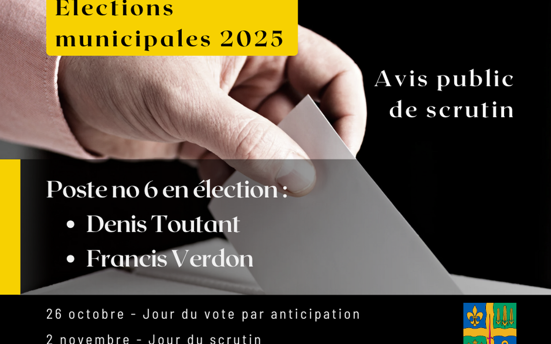 ✅ Jour de vote par anticipation : Dimanche 26 octobre 2025, de 12 h à 20 h