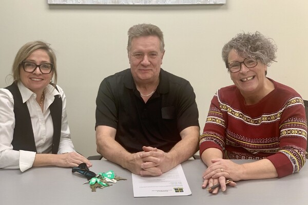 Sur la photo : La mairesse Sylvie Laplante, accompagnée d'Auguste Breton, directeur général de la Coop St-Patrice et Annie Frenette, directrice générale de la municipalité.